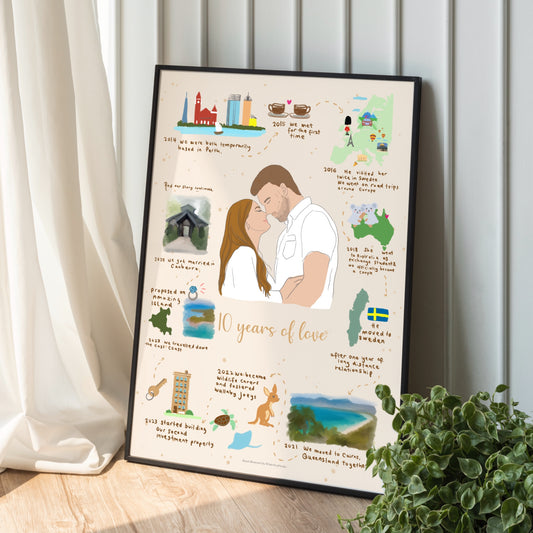 Story of us - Relationship Timeline Illustration SS Unique Wedding Anniversary Gift