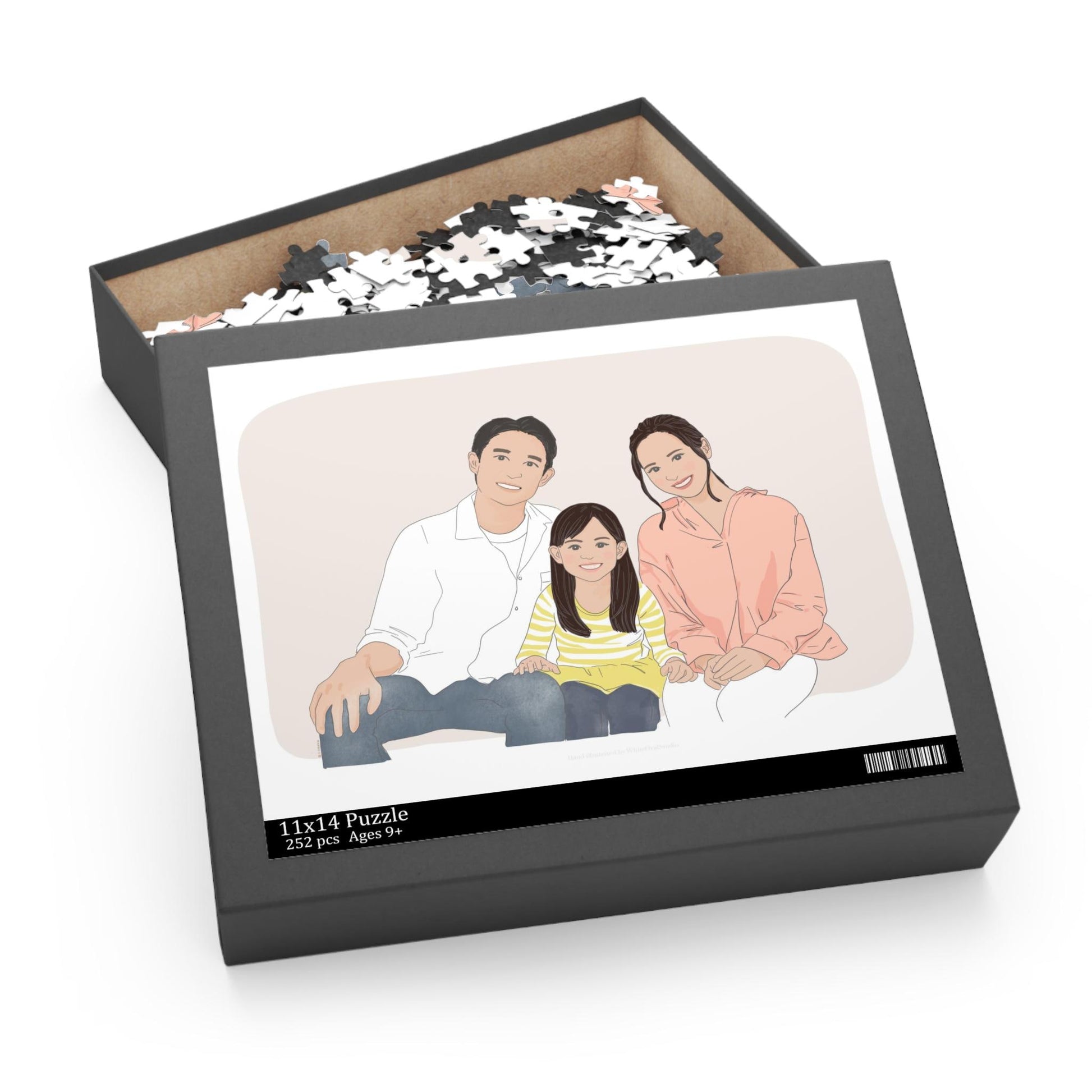 Custom puzzle - personalized portrait, photo or watercolour style. Premium boxed, 252 pieces, 11x14”